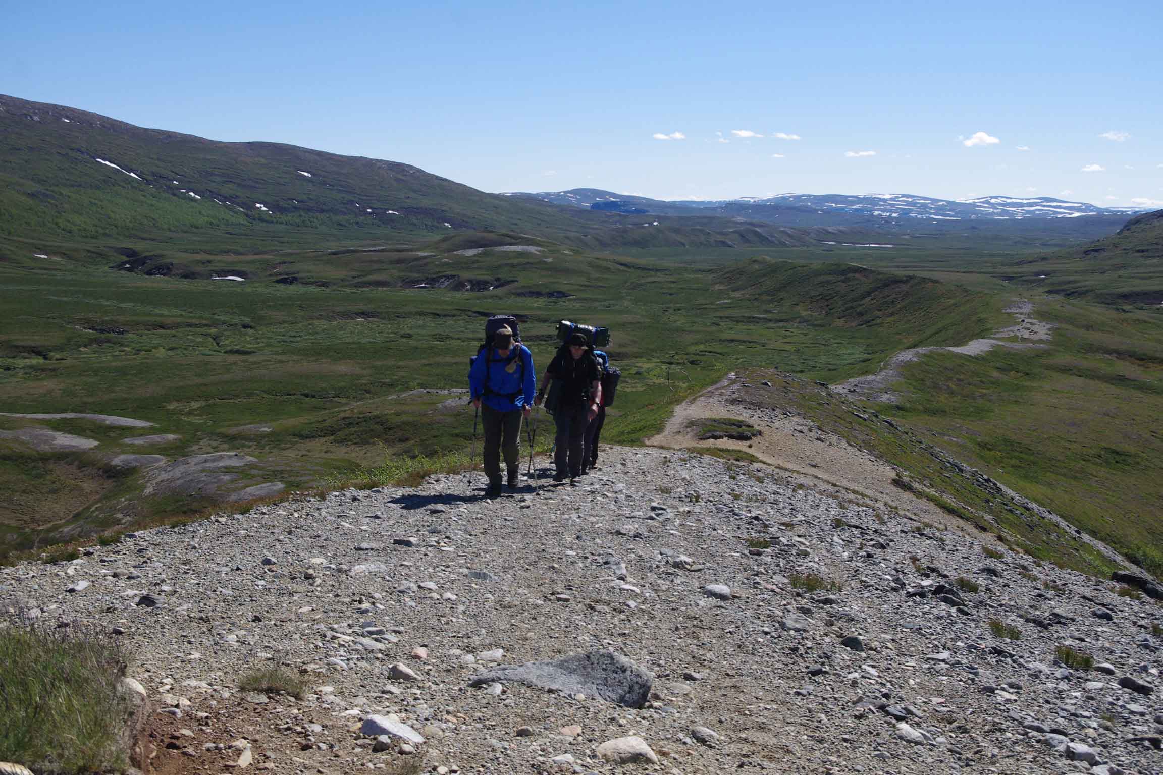 Polku Pältsanin tuvalta Gappohyttanille meni kapeaa helppokulkuista harjumuodostelmaa pitkin. Pikku pariisitar oli meillä matkaseurana ja opetteli samalla suomea.