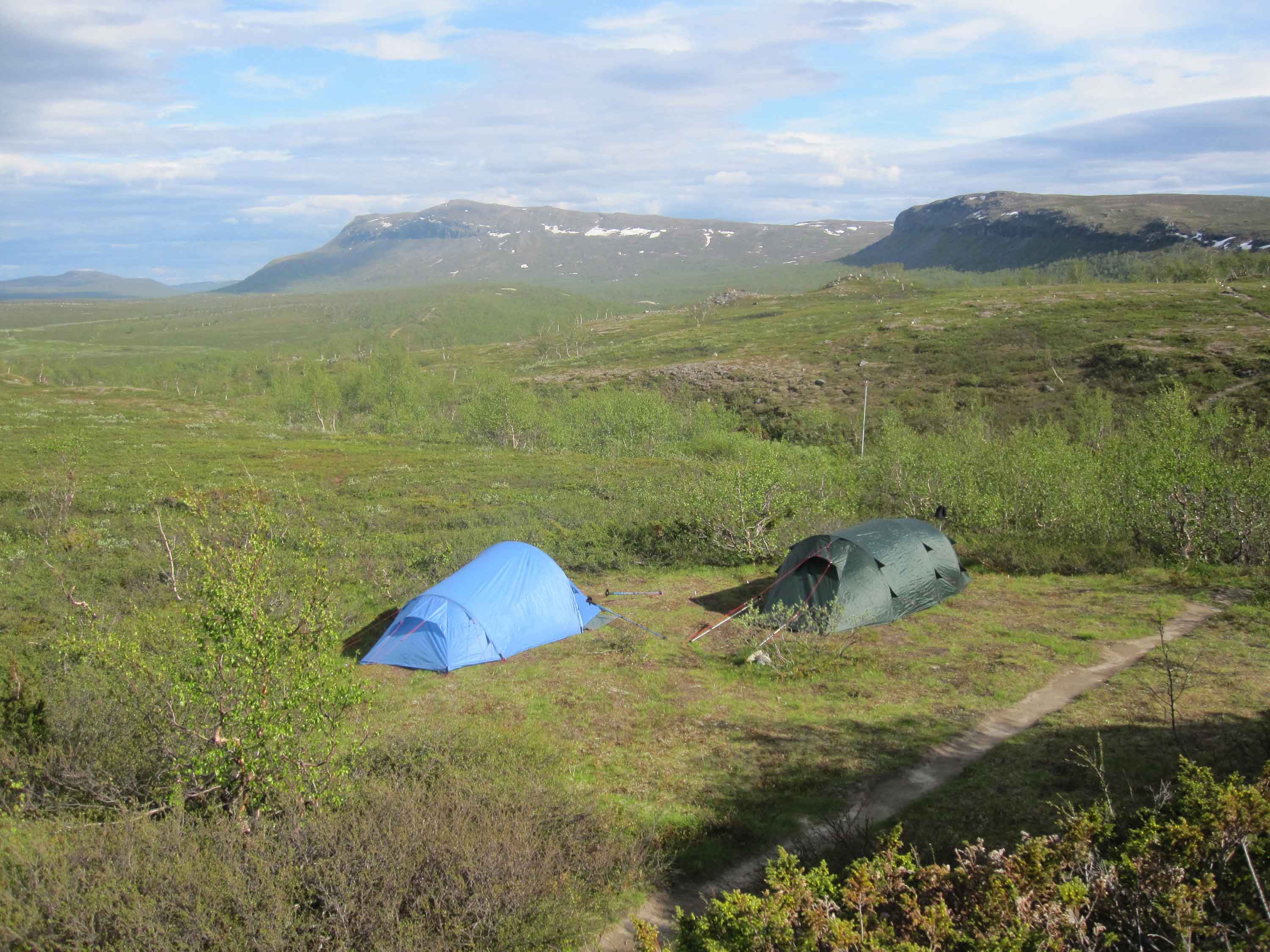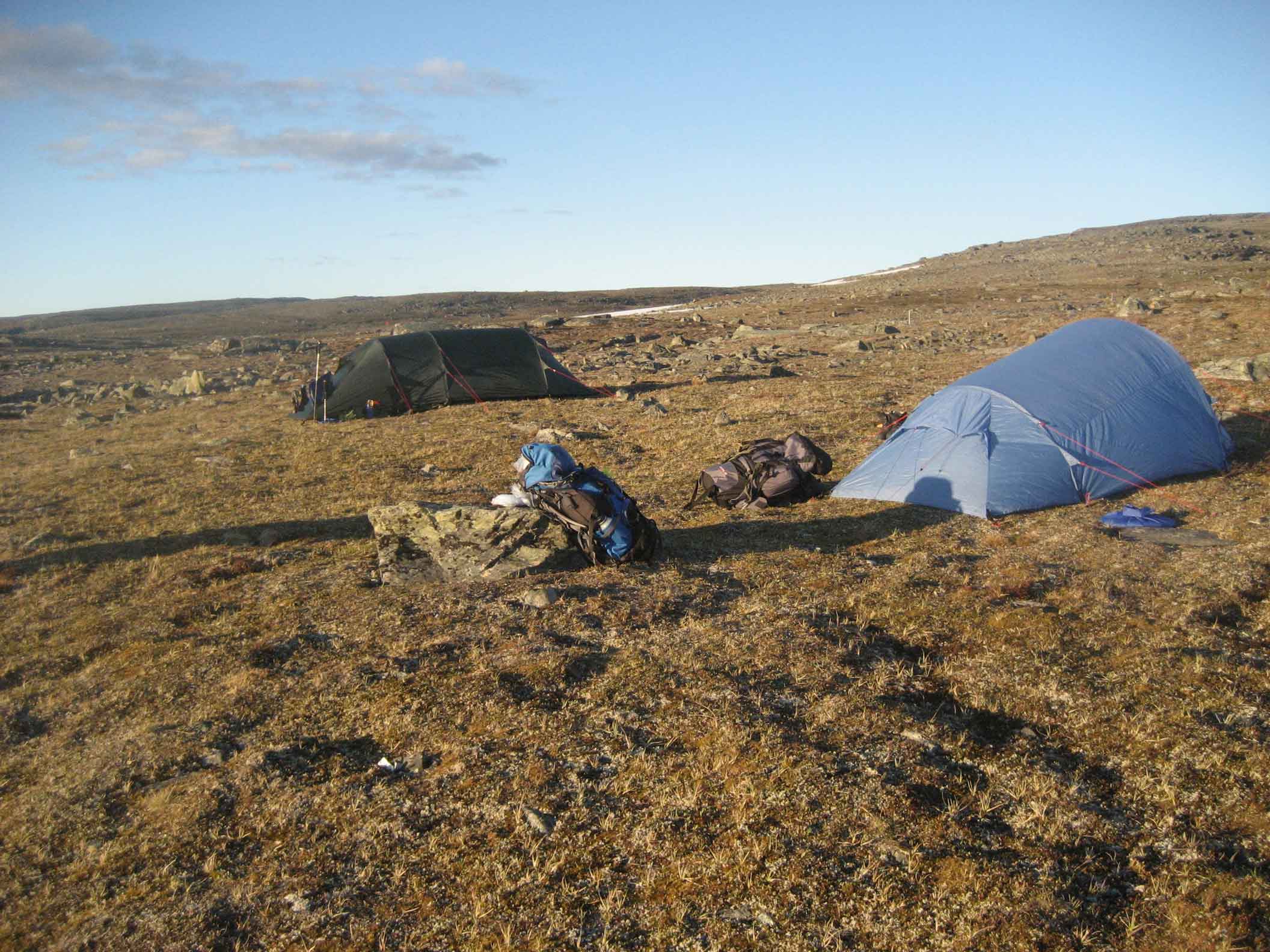 Ensimmäisen yön leirimme tunturiylängöllä. Yö oli aika vilpoinen.