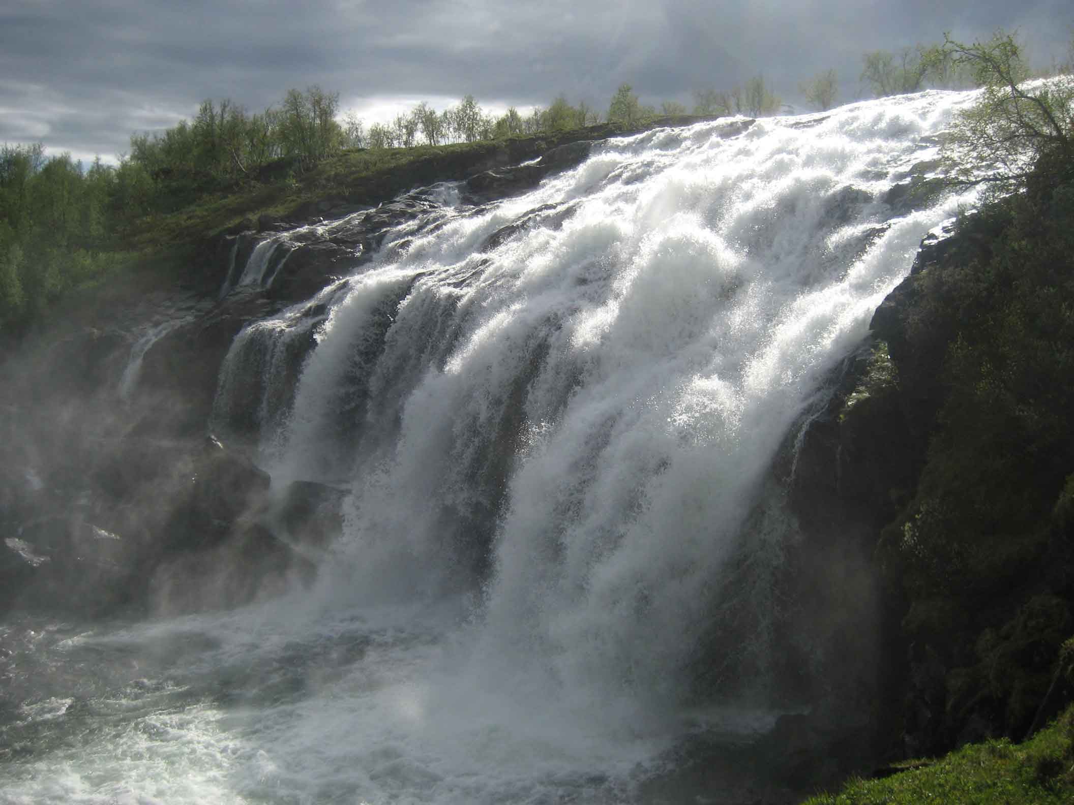 Tupaisäntä oli Suomen ruotsalainen ja osasi hyvin suomea. Saimme ystävällisen vastaanoton. Hän neuvoi meille hyvän telttapaikan ja kehui lähellä olevan mahtavan vesiputouksen, jota kannattaisi käydä katsomassa. Siellä oli myös pronssinen patsas joka lienee esittänyt veden jumalatarta.