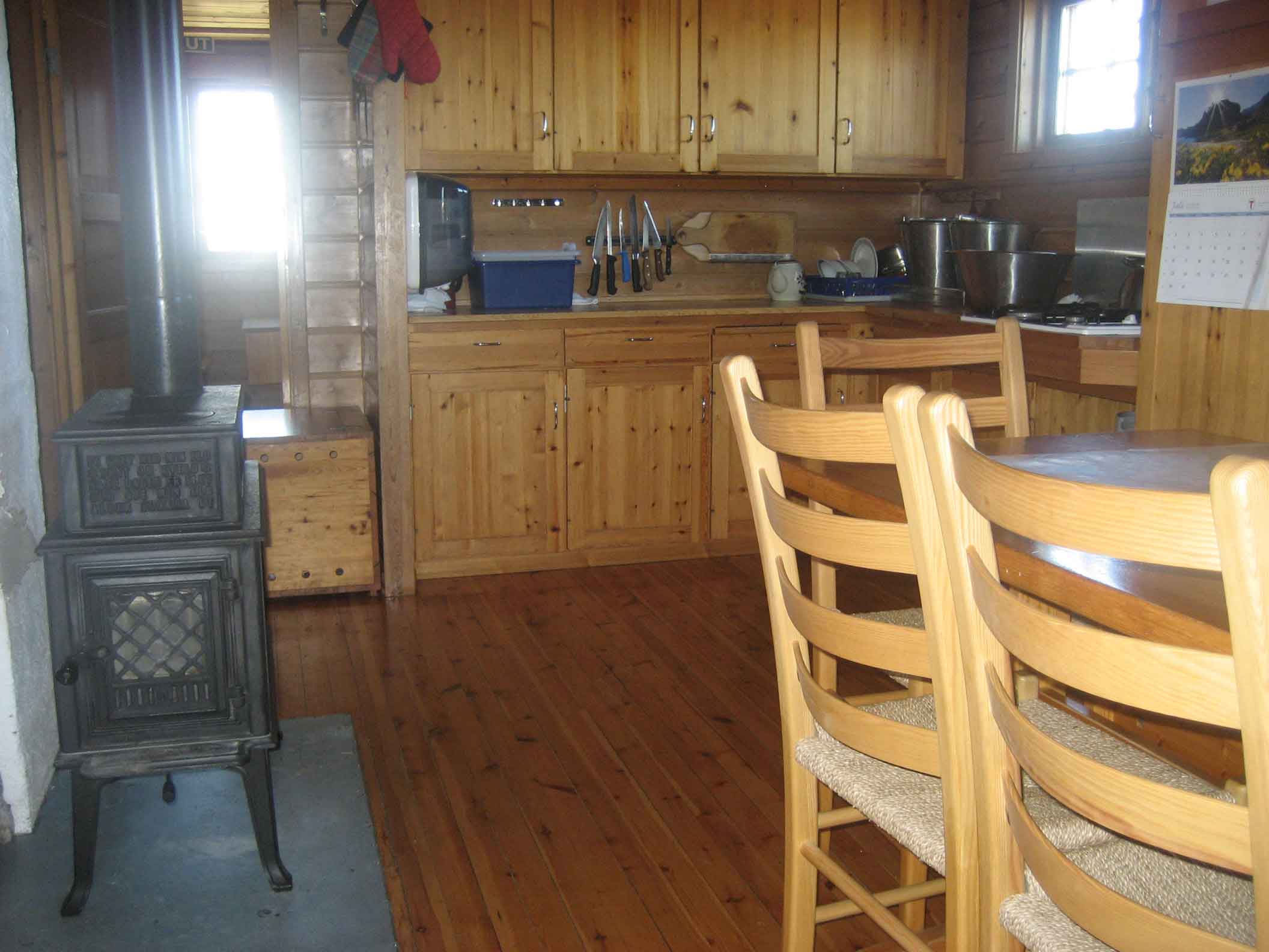 Gappohyttanin tupa sisältä. Pieni ja hyvin varustettu, mutta kallis.